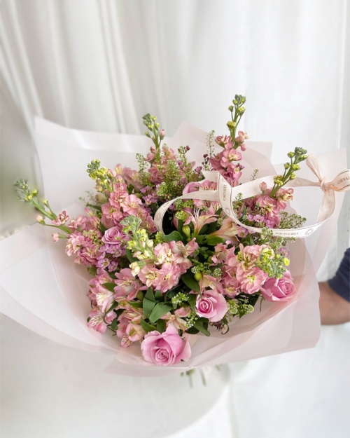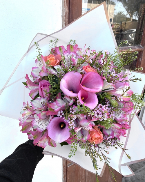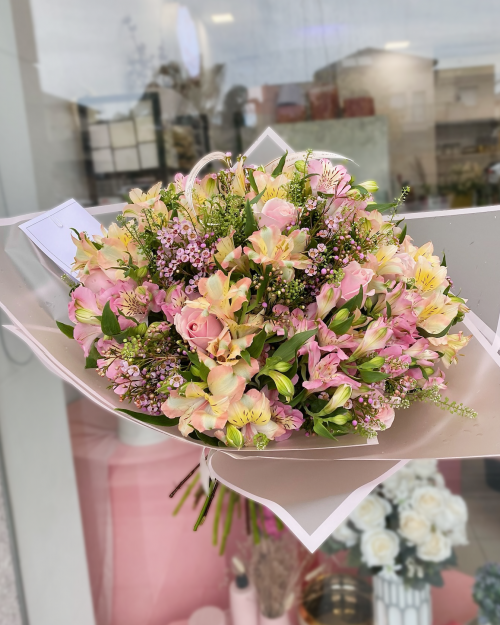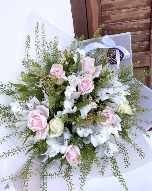 ₪295.00 – ₪490.00זר רומנטי וקסום, המכיל ורדים, שעווה ואלסטרומריה. ניתן להגדיל את גודל הזר. * הזר המוצג בתמונה הינו גודל רגיל -“בינוני”