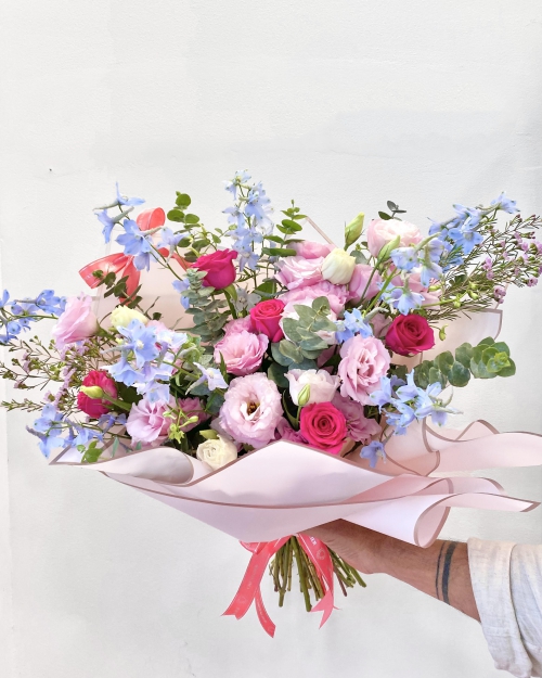 ₪290.00 – ₪450.00זר קסום בגווני ורוד ותכלת עטוף באריזה איכותית מלאה סטייל ועמידה במים. * הזר המוצג בתמונה הינו גודל רגיל -“בינוני”
