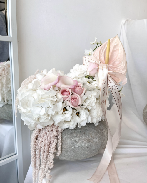 ₪510.00 – ₪790.00סידור אה-סימיטרי, יוקרתי, אמנותי ומרהיב ביופיו, מכיל פרחים איכותיים בצבעי לבן וורוד עדין הסידור מגיע בכלי חרסינה צמיגי עם פיגמנט אבן, משולב סרט איכותי. *הסידור המופיע בתמונה בגודל בינוני.