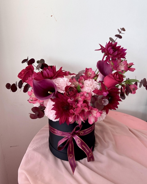 ₪305.00 – ₪499.00סידור עגול וגבוהה בקופסא שחורה משלוב בפרחים מרהיבים ומיוחדים בגווני בורדו וורוד שזורים בשזירה קופצנית וא-סימטרית. בתמונה המוצגת הסידור בגודל “בינוני”.