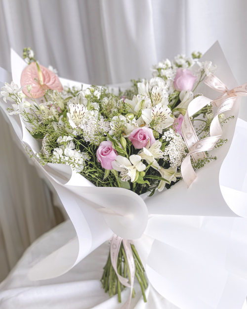 ₪295.00 – ₪490.00זר רומנטי וקסום, המכיל ורדים, שעווה ואלסטרומריה. ניתן להגדיל את גודל הזר. * הזר המוצג בתמונה הינו גודל רגיל -“בינוני”