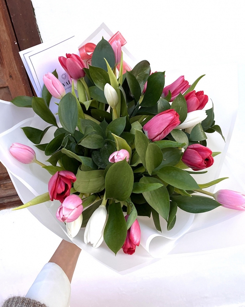 ₪205.00 – ₪530.00זר טוליפים יוקרתי בגווני לבן ורוד ואדום (כמות הטוליפים משתנה בהתאם לבחירתך). מגיע עטוף בנייר איכותי עמיד במים, ובסרט עדין ומלא בסטייל. *הזר בתמונה מכיל 21 טוליפים.