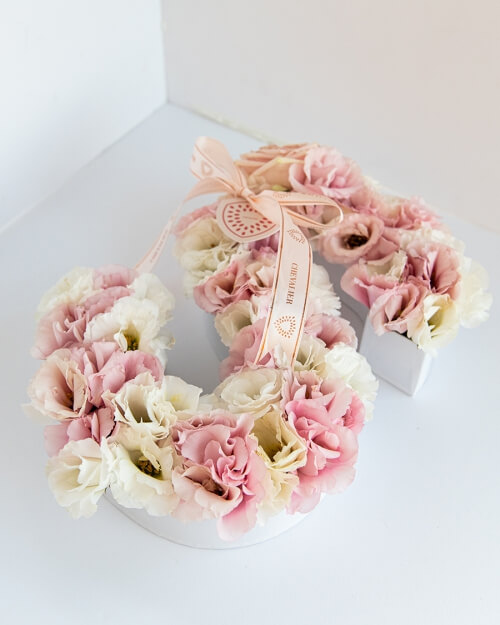 ₪300.00סידור אות מלאה בפרחי ליזיאנטוס ורודים עם ניצוצות של פלוקס ורוד. ניתן לבחור כל אות אפשרית.