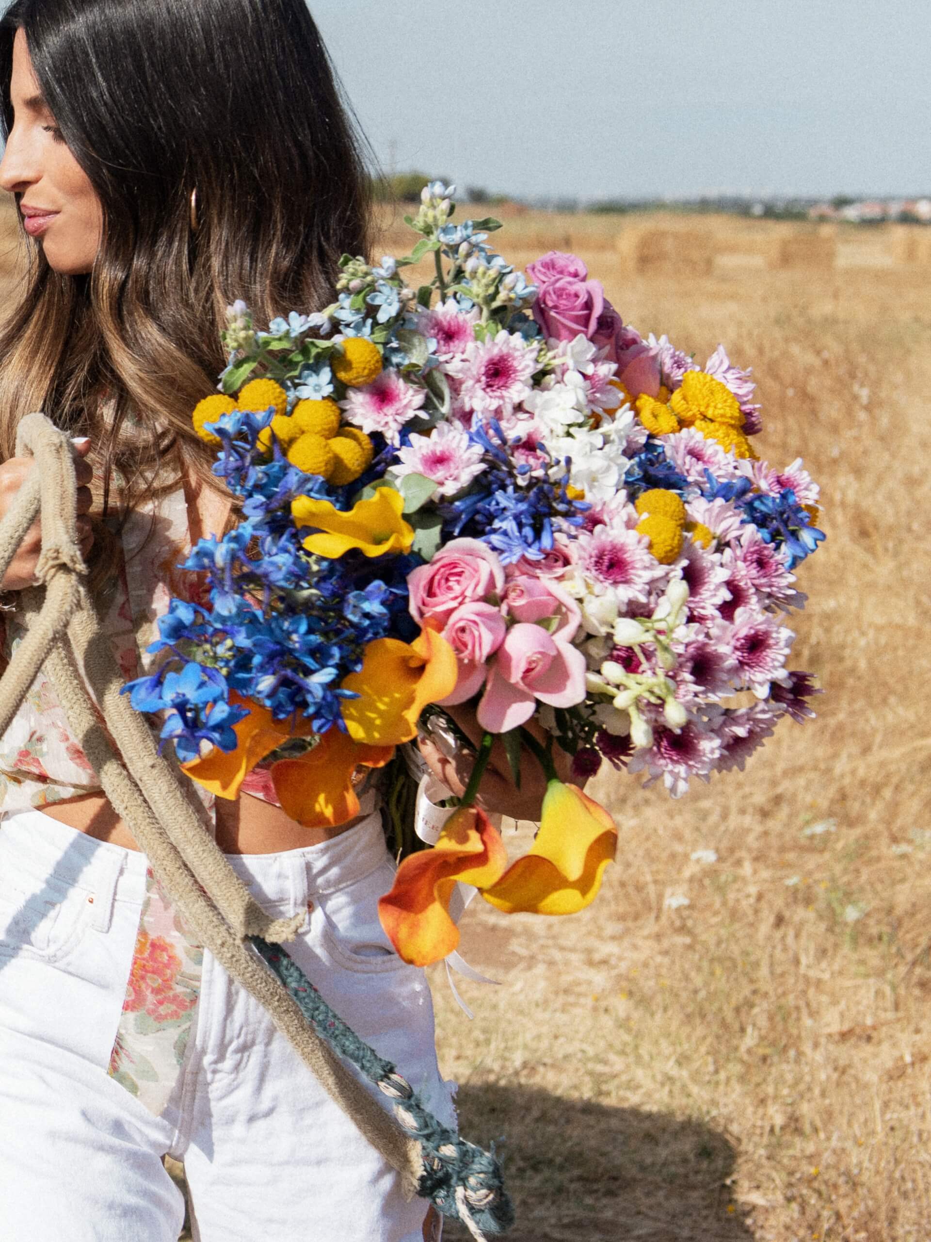 זר פרחים מטורף המורכב משילובי פרחים יוצאי דופן, היוצרים יחדיו מחזה עוצר נשימה.