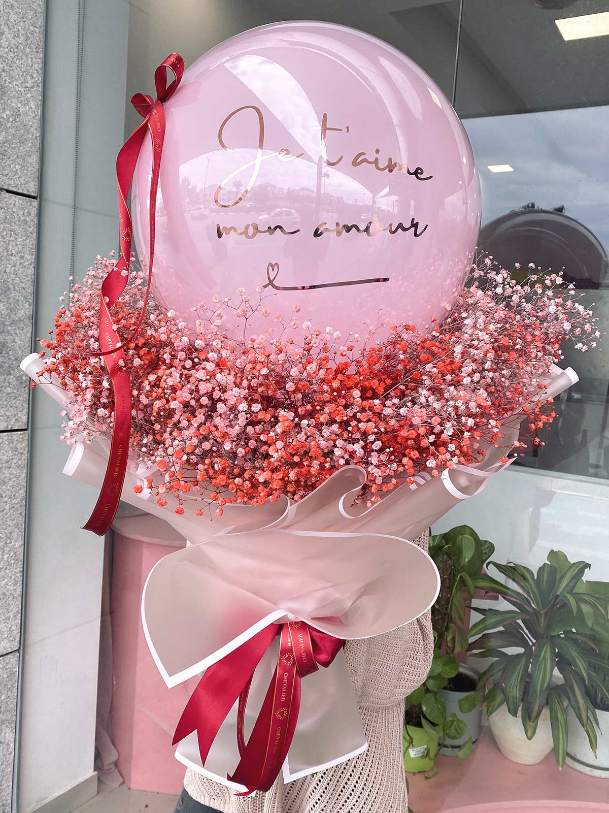 הטרנד שכבש את ישראל בסטייל של שווליה בעיצוב מיוחד לולנטיין. זר ענק של גיבסניות אדומות וורודות עם בלון והקדשה je t’aime mon amour עטופים בשפע של נייר מיוחד עמיד למים, שיגרמו להם להתרגש מהיופי והייחודיות!!!