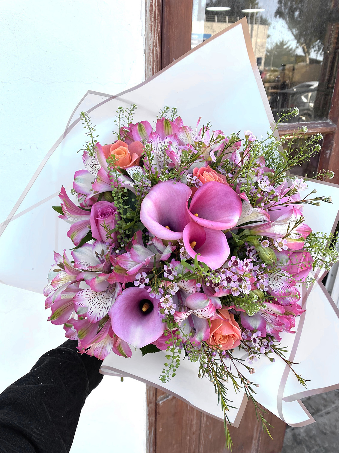 זר יוקרתי ומיוחד במינו, המשלב קאלות מלכותיות השזורות בייחודיות של שווליה ויוצרות מראה של פרח מיוחד, הזר משלב אלסטרומריות ורודות, ורדים, שעווה ועופרים.