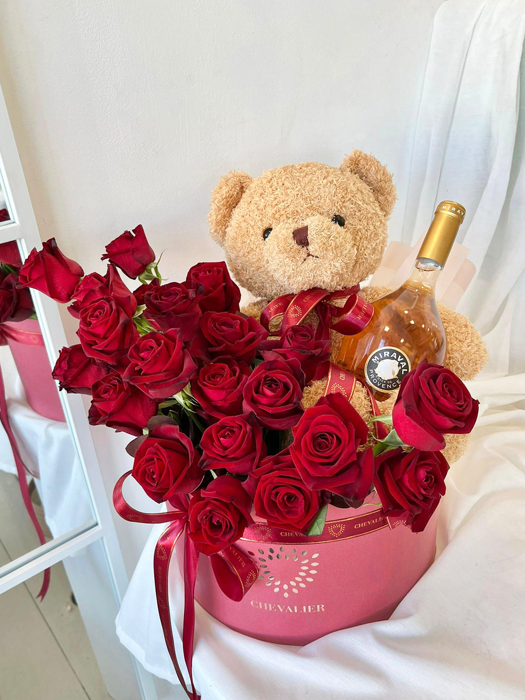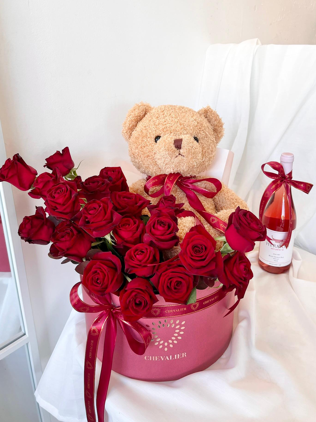 המארז המושלם להראות את האהבה שלכם, מארז עם 25 ורדים אדומים ודובי מפנק בקופסא רומנטית ענקית.