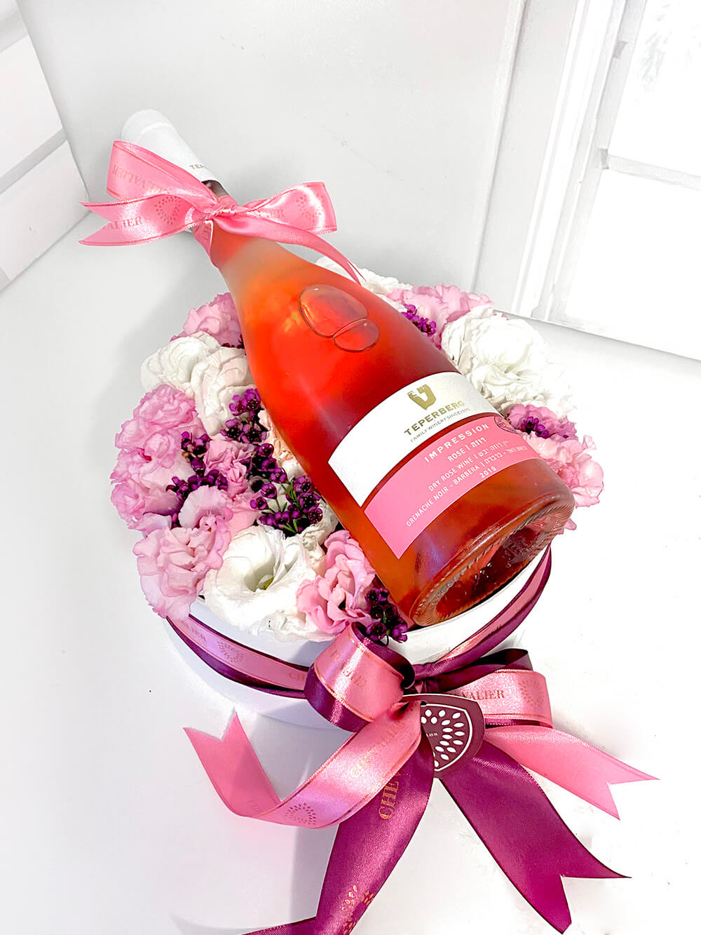 סידור ורוד בייבי ולבן עם יין רוזה