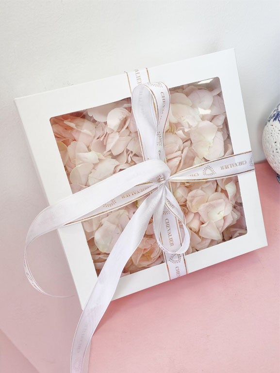 קופסת עלי כותרת בגווני קרם וורוד בייבי לשושבינה.