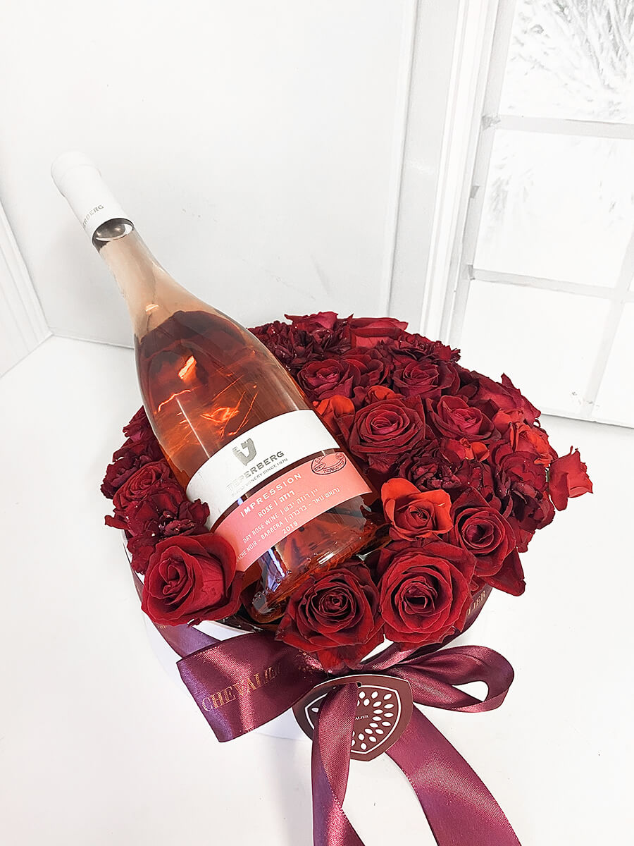 קופסת פרחים עגולה ומרשימה, המשלבת כ- 20 ורדים וכ- 20 פרחים נוספים בגווני אדום שהופכים את הסידור למשוגע ונחשק. הקופסא קיימת ב- 3 גדלים – גדול, בינוני וקטן. בתמונה המוצגת הקופסא בגודל “בינוני”. המארז מגיע עם יין.